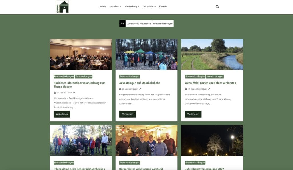 Für den Bürgerverein Wardenburg durften wir die Website grundlegend modernisieren. Das Ergebnis durfte vor ein paar Wochen live gehen.